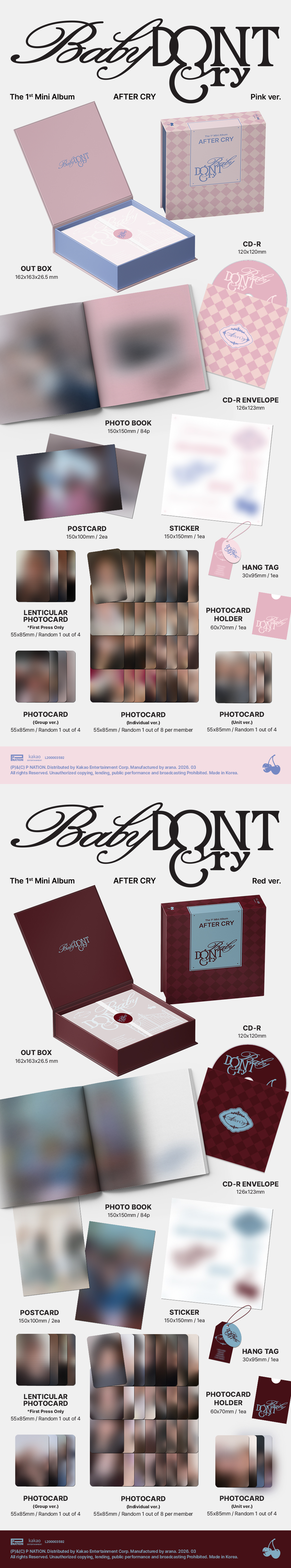• GROUP PHOTOCARD: 55 × 85 mm / 1 random out of 4 types included (images vary by version) PHOTOCARD HOLDER: 60 × 70 mm / 1 included (images vary by version)