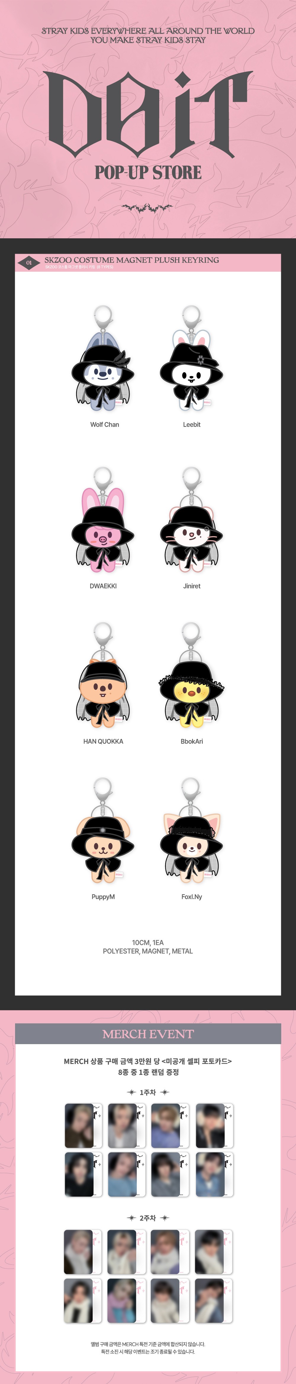 Der Stray Kids “DO IT” Pop-Up Store MD – SKZOO Costume Magnet Plush Keyring ist ein niedliches und vielseitiges Accessoire für jeden STAY. Jeder Keyring zeigt einen weichen Plüsch-SKZOO-Charakter in einem lustigen Kostüm, ausgestattet mit einem Magneten, mit dem du ihn an Metallflächen befestigen oder als süßen Anhänger nutzen kannst. Leicht, robust und voller Persönlichkeit verleiht dieser Keyring deinen Schlüsseln, Taschen oder deinem Arbeitsplatz einen verspielten Touch. Ein perfektes Sammlerstück aus dem “DO IT” Pop-Up Store für Fans, die charmantes und interaktives SKZOO-Merch lieben.